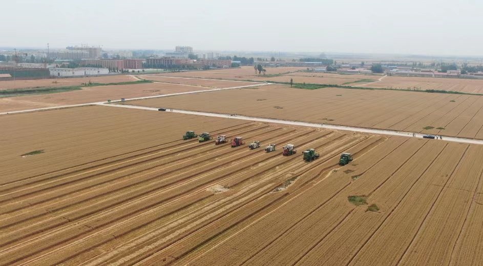 夏收時節(jié),在山東省德州市臨邑縣德平鎮(zhèn)大西關村的麥田里,幾臺收割機排成一排,轟隆隆地穿梭在金色的麥浪中。富民家庭農(nóng)場負責人魏德東指著剛收獲的小麥說:“畝產(chǎn)量將近1300斤,一畝地比往年增產(chǎn)了百十斤,不僅產(chǎn)量高,品質(zhì)也好?!?/p>