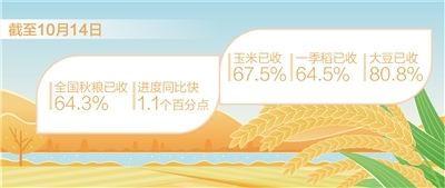 全國秋糧已收六成多(秋收進(jìn)行時(shí)) 制圖:張丹峰本報(bào)北京10月15日電(記者常欽)據(jù)農(nóng)業(yè)農(nóng)......