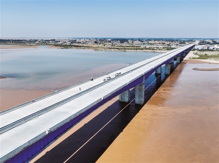 9月28日,包茂高速公路昭君黃河特大橋?qū)崿F(xiàn)主體完工。昭君黃河特大橋是包茂高速包頭至東勝改擴建工程包頭西連接線的控制性工程,主橋為國內(nèi)在建單聯(lián)最長的梁式橋,采用雙向4車道高速公路標準建設,全長4300米。該橋建成通車后,將極大地縮短包鄂兩地的行車時間,提升路網(wǎng)通行能力。(本報記者 王曉博 攝)
