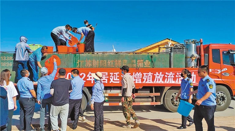 額濟納旗2022年居延海漁業(yè)資源增殖放流活動在風光秀麗、生態(tài)優(yōu)美的居延海畔東歸碼頭啟動,經(jīng)公證機關公證,同意現(xiàn)場向居延海放流草魚魚苗100萬尾,花白鰱89萬尾。活動現(xiàn)場,前來參與活動的居民拿著水桶,把一條條活蹦亂跳的魚苗放生到居延海中。據(jù)了解,該旗從2008年以來累計放流的魚苗數(shù)量達到了900余萬尾。