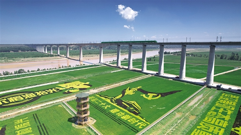 城際列車行駛在呼鄂線跨黃河特大橋。楊睿迪 攝