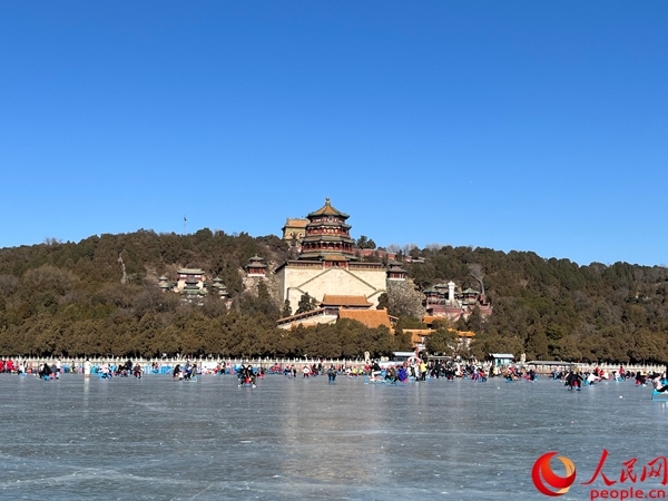 春節(jié)期間游客在頤和園冰場(chǎng)上游玩。人民網(wǎng)記者 杜燕飛攝