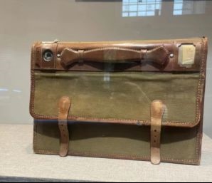 保密公文包也值得一次合影留念。老式公文包的基礎上加了風琴包的拓寬設計,拉鏈線繩穿過包蓋上的小孔,最后加上橡皮泥拓印,就是一個老式的安全保密小機關(guān)。