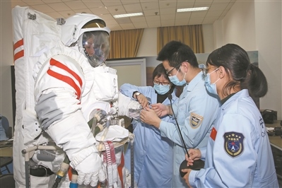 圖③:中國(guó)航天員中心科研人員正在進(jìn)行產(chǎn)品測(cè)試。孫 偉攝