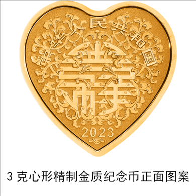 3克心形金質(zhì)紀(jì)念幣為精制幣,含純金3克,外接正方形邊長(zhǎng)18毫米,面額50元,成色99.9%,最大發(fā)行量20000枚。