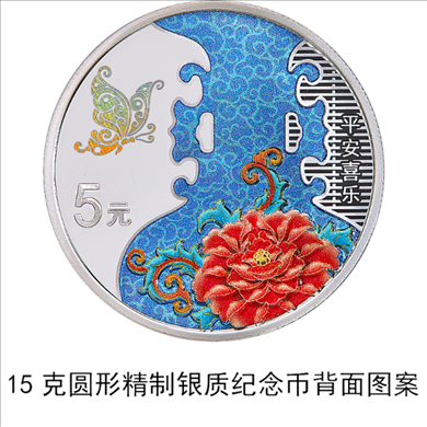 15克圓形銀質(zhì)紀(jì)念幣為精制幣,含純銀15克,直徑33毫米,面額5元,成色99.9%,最大發(fā)行量40000枚。