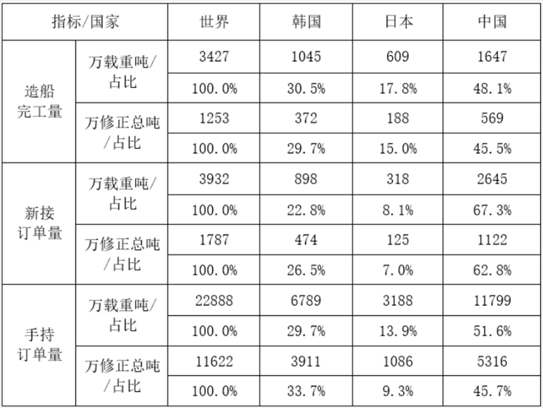2023年1-5月世界造船三大指標(biāo)市場份額。 來源:中國船舶工業(yè)行業(yè)協(xié)會