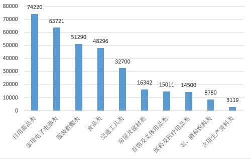 圖4商品細(xì)分領(lǐng)域投訴前十位(單位:件)