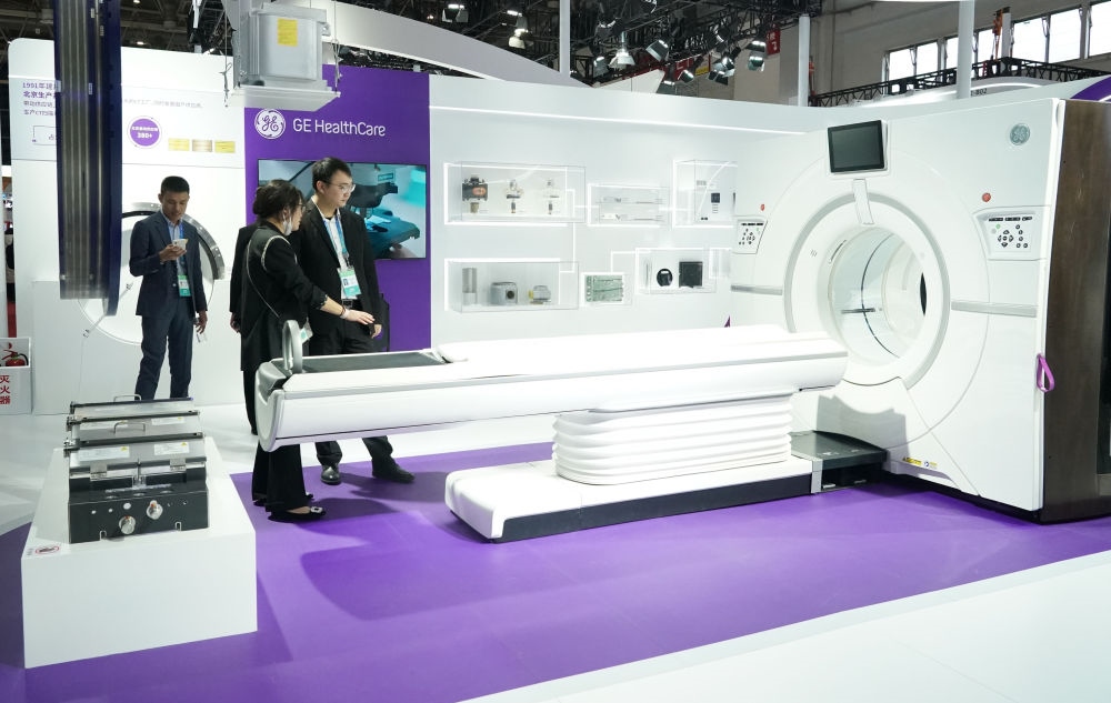 這是在首屆中國國際供應(yīng)鏈促進(jìn)博覽會健康生活鏈展區(qū)拍攝的GE醫(yī)療展位(2023年11月29日攝)。新華社記者 任超 攝