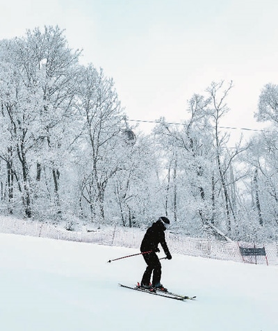 吉林省吉林市萬(wàn)科松花湖度假區(qū),游客在體驗(yàn)滑雪樂趣。新華社記者 許 暢攝