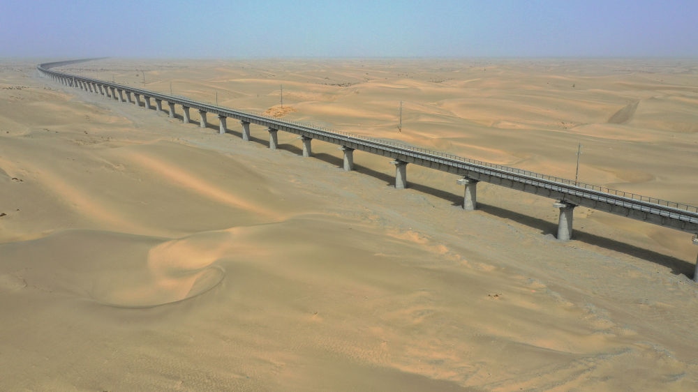 這是2022年5月19日拍攝的和若鐵路依木拉克特大橋(無人機照片)。新華社記者 丁磊 攝
