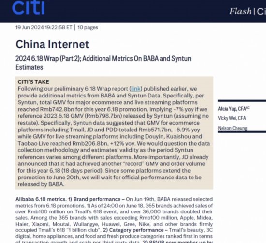 6月19日以來(lái),華爾街投行匯豐、花旗、高盛等相繼發(fā)布618電商大促研報(bào),認(rèn)為今年618電商消費(fèi)增長(zhǎng)明顯,數(shù)據(jù)機(jī)構(gòu)星圖發(fā)布的618成交下降數(shù)據(jù)統(tǒng)計(jì)方式存在明顯漏洞。