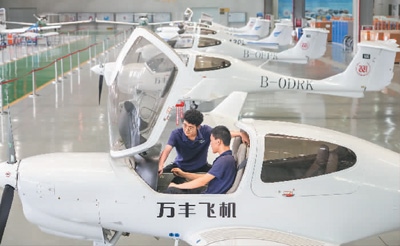 萬豐集團技術(shù)人員在調(diào)試新下線的飛機。章永濤攝