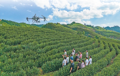 重慶市南川區(qū)在興隆鎮(zhèn)金花村白茶基地開展高素質農民植保無人機飛手培訓。羅 川攝(人民視覺)