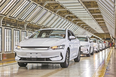 安徽省合肥市長(zhǎng)豐縣合肥比亞迪汽車(chē)廠區(qū),新能源汽車(chē)整齊下線。長(zhǎng)豐縣積極發(fā)展戰(zhàn)略性新興產(chǎn)業(yè),新能源汽車(chē)產(chǎn)業(yè)集群不斷壯大。