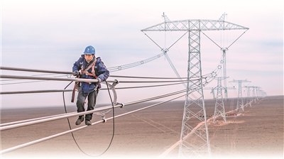 新疆伊吾縣淖毛湖鎮(zhèn),工人在進(jìn)行高空作業(yè)。