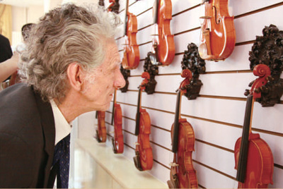 琳瑯滿目的各式提琴產(chǎn)品。