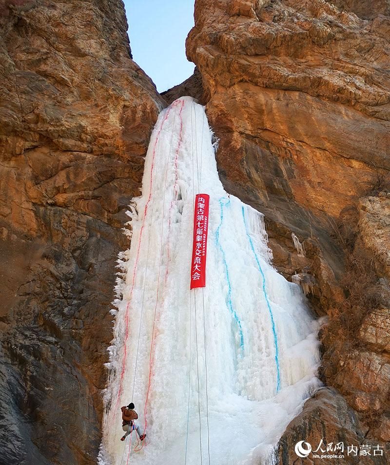 1月16日,由內蒙古登山協(xié)會、內蒙古攀巖攀冰協(xié)會聯(lián)合舉辦的內蒙古第七屆攀冰交流大會在包頭市土默特右旗舉行,來自內蒙古各地的攀冰愛好者和戶外運動愛好者在晶瑩剔透的冰瀑上挑戰(zhàn)自我,感受極限運動帶來的樂趣。(丁根厚)