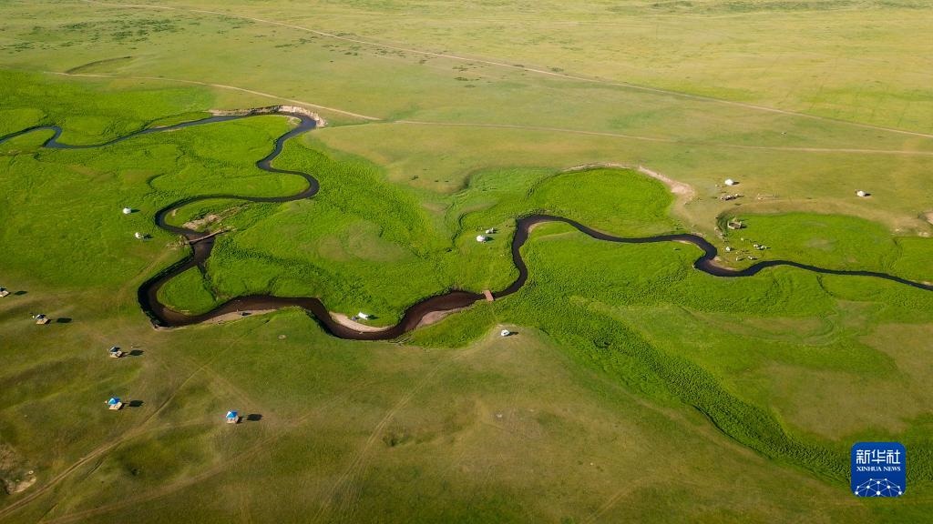 夏日,內(nèi)蒙古錫林郭勒盟西烏珠穆沁旗的草原綠草如茵,風(fēng)光旖旎。新華社記者任軍川攝