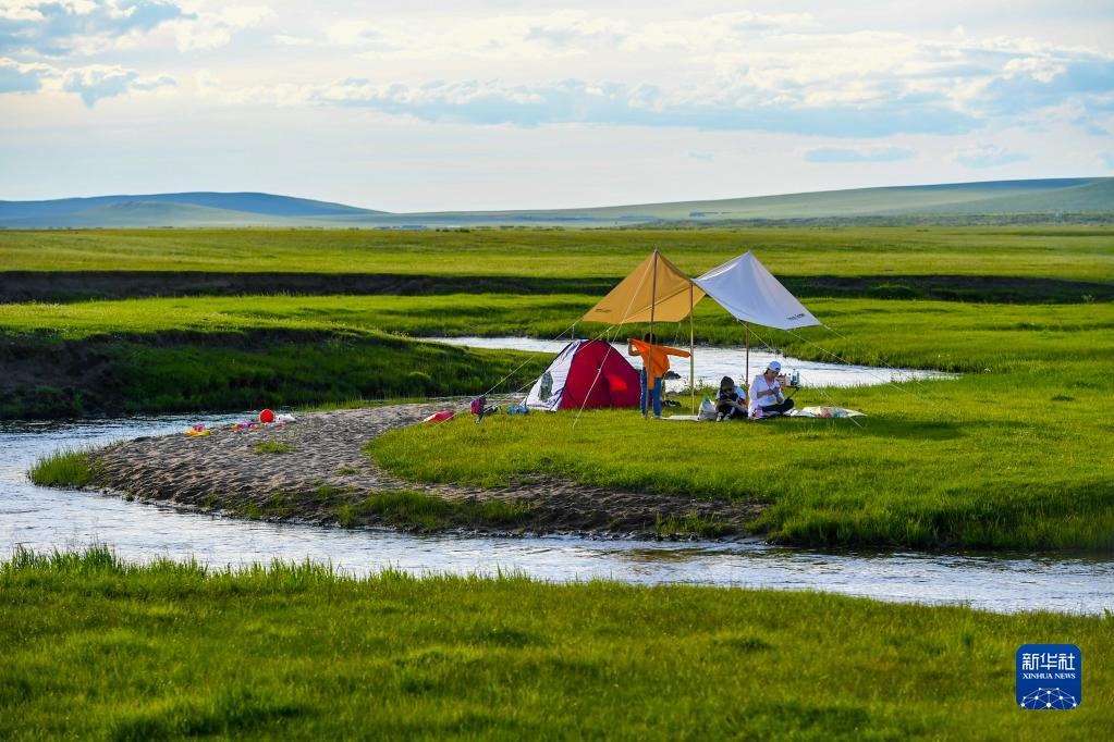 7月19日,游客在西烏珠穆沁旗巴拉嘎爾河畔露營。