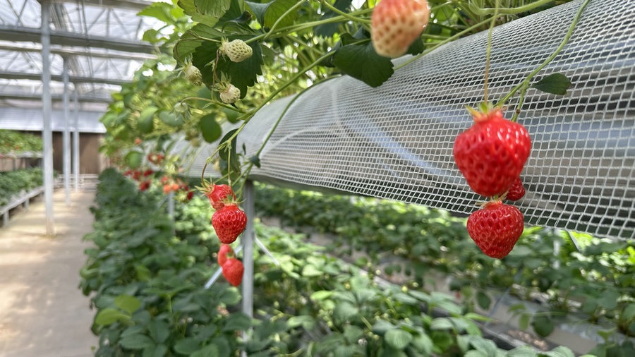 園區(qū)內(nèi)的草莓鮮艷欲滴 記者 李文華攝影