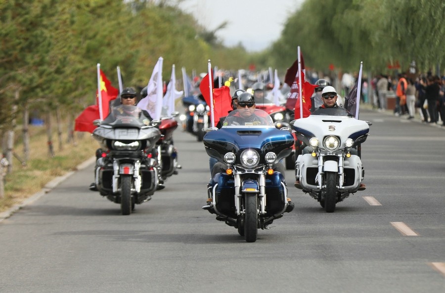 一聲令下,150輛摩托車(chē)在轟鳴聲中出發(fā),第一站直奔大黑河軍事文化樂(lè)園,在此休整20分鐘后,直奔第二站呼和浩特城市展示中心。