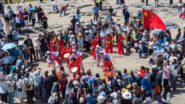 天下黃河九十九道彎,最美不過(guò)乾坤灣。作為黃河流域標(biāo)志性地質(zhì)奇觀,乾坤灣呈現(xiàn) 320 度超大“S”形天然彎道,黃河如巨龍蜿蜒盤(pán)旋、山水相依、天地成畫(huà),登高遠(yuǎn)眺盡顯太極神韻與山河壯闊,是領(lǐng)略黃河文明、拍攝自然大片的必到之處?!拔逡弧奔倨?,乾坤灣景區(qū)特別打造陜北民俗視聽(tīng)專(zhuān)場(chǎng),推出非遺市集和陜北說(shuō)書(shū)、民歌、秧歌、嗩吶、快閃等傳統(tǒng)民俗文化全天上演。饸饹宴、抿節(jié)、油饃饃、碗托非遺美食市集同步開(kāi)啟,游客可漫步觀景棧道、登臨觀景臺(tái),賞九曲黃河勝景,聽(tīng)非遺天籟,品非遺美食,在自然與人文交融中,沉浸式感受黃河文化的磅礴與民俗文化的獨(dú)特魅力。