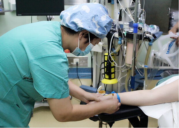 剛來到手術(shù)室,她根據(jù)科室的工作特點(diǎn),發(fā)現(xiàn)作為以婦產(chǎn)科為龍頭科室的醫(yī)院來說,急診搶救的時(shí)候非常多,而在這種情況下,術(shù)中采血顯得非常重要,既能讓醫(yī)生實(shí)時(shí)根據(jù)化驗(yàn)結(jié)果的提示,制定搶救計(jì)劃,又能為搶救的效果提供臨床依據(jù)。所以巡回護(hù)士的采血技能尤為重要,根據(jù)這一情況,護(hù)士長決定開展動(dòng)脈置管術(shù)。提前將留置針置于動(dòng)脈內(nèi),術(shù)中需要采血做化驗(yàn)檢查時(shí),從置管處直接抽取血液,這樣既能省略護(hù)士穿刺找血管的時(shí)間,又能及時(shí)將血標(biāo)本送檢,為搶救治療提供保障的同時(shí)節(jié)約了時(shí)間。但是需人人在短時(shí)間內(nèi)掌握這一新技術(shù)。