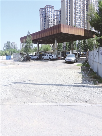 6月29日,根據網友舉報,記者來到位于北二環(huán)快速路邊上的毫沁營回遷小區(qū)。該小區(qū)與北二環(huán)快速路中間有一片拆遷的空地,空地被人承包下來加裝圍擋后用作停車場。停車場內停了很多大大小小的車輛,還有兩臺撬裝式加注裝置,但并沒見到有人在這里加油。
