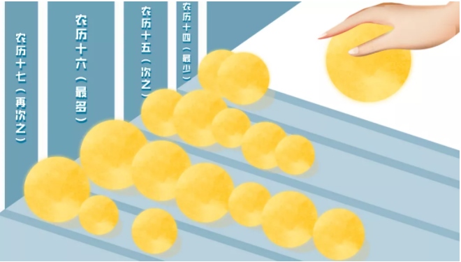 統計發(fā)現,“滿月”出現次數最多的是農歷十六,其次是農歷十五,再次是農歷十七,最少的是農歷十四。