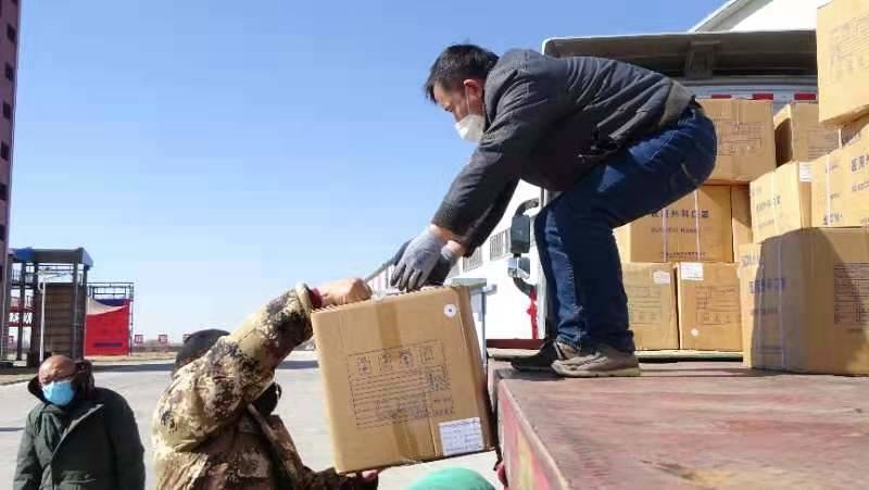 3月1日清晨,錫林郭勒盟至呼和浩特的后山地區(qū)飄著小雪,氣溫在零下10度以下,但是,風雪擋不住來自錫林郭勒大草原的一片片愛。一輛17米帶掛卡車長驅千里十多小時,帶著錫林郭勒大草原的問候,連夜運輸到呼和浩特,只為早點送達100萬只一次性醫(yī)用外科口罩。這輛卡車上掛著內容為“祝青城人民早日戰(zhàn)勝疫情,錫盟公益助力呼和浩特市”和“洶洶疫情不可怕,齊心協(xié)力戰(zhàn)勝它”的條幅,表達“中國馬都”向“中國乳都”的真切問候。
