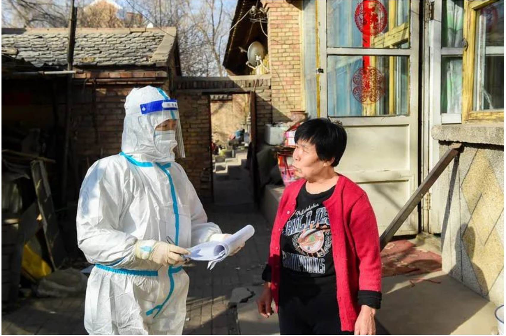 ↑3月6日,在呼和浩特市賽罕區(qū)東瓦窯社區(qū),網(wǎng)格員(左)入戶(hù)核對(duì)家庭信息。