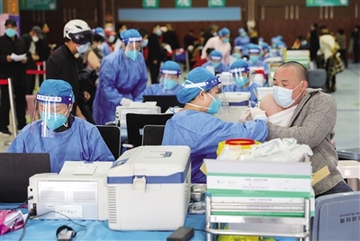 “請(qǐng)大家有序排隊(duì),間隔一米安全距離,接種過(guò)程全程佩戴好口罩,主動(dòng)出示健康碼、行程碼……”現(xiàn)場(chǎng)志愿者不斷提醒著。接種點(diǎn)設(shè)置了知情告知、登記、候種、接種、留觀等區(qū)域,還配備了消殺人員,分時(shí)間段進(jìn)行全面消殺,同時(shí),為了防止人員接種后出現(xiàn)不良反應(yīng),還配有專(zhuān)業(yè)醫(yī)護(hù)人員,各個(gè)環(huán)節(jié)井然有序,接種流程實(shí)行單向循環(huán)。