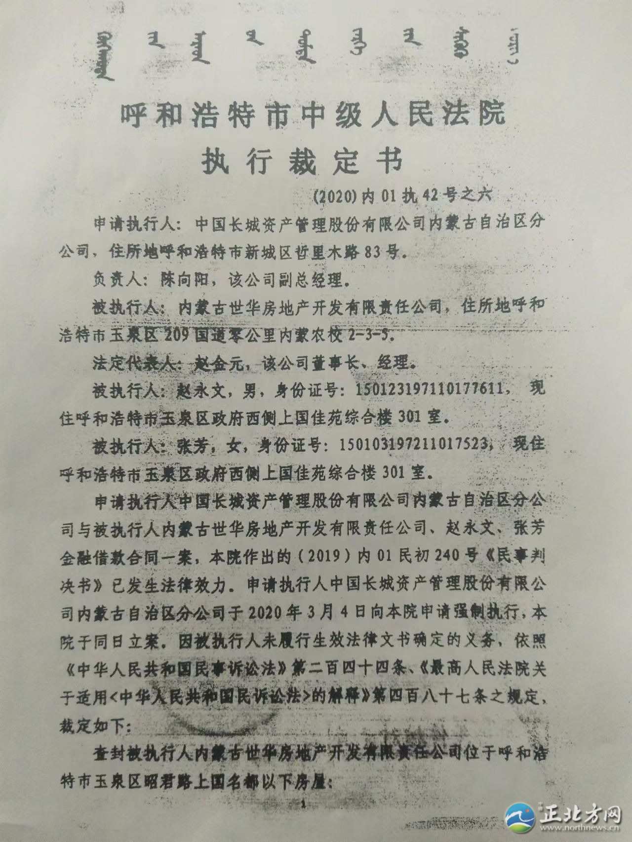 記者從上國(guó)名都部分業(yè)主提供的法院執(zhí)行裁定書(shū)上了解到,僅中國(guó)長(zhǎng)城資產(chǎn)管理股份有限公司內(nèi)蒙古自治區(qū)分公司一家申請(qǐng)執(zhí)行人就申請(qǐng)法院查封了上國(guó)名都住宅樓80多套房產(chǎn)。其他債權(quán)人又通過(guò)多家法院查封了上國(guó)名都小區(qū)60多套住宅。目前,上國(guó)名都216套住宅有140多套被查封。