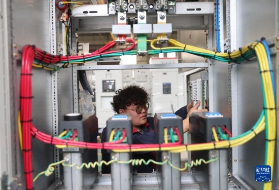 2月15日,在云南省大理市一變壓器生產(chǎn)車間,工人安裝變壓器配件。