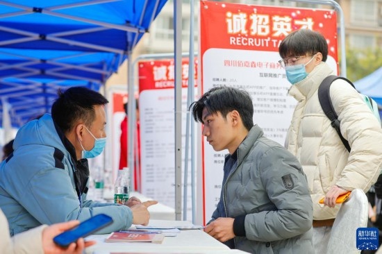 2月17日,在中國成都人力資源服務產(chǎn)業(yè)園,招聘企業(yè)工作人員向求職者介紹企業(yè)情況。