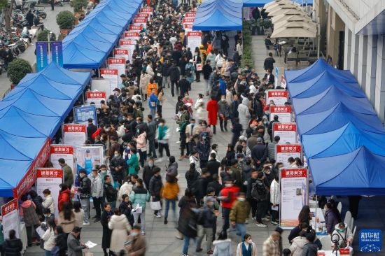 2月17日,人們在中國成都人力資源服務產(chǎn)業(yè)園查看招聘信息,尋找工作機會。