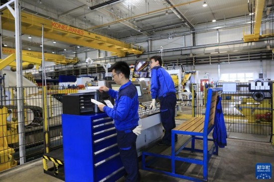 工人在位于太倉(cāng)市高新區(qū)的帝希潔具系統(tǒng)(蘇州)有限公司生產(chǎn)車間內(nèi)進(jìn)行加工作業(yè)(3月16日攝)。