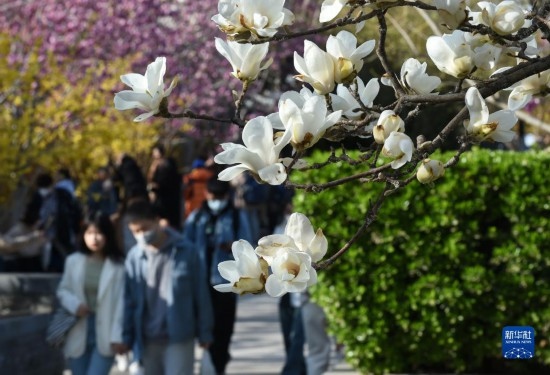 春回大地,北京各種花卉競(jìng)相綻放,人們紛紛走到戶外,賞花踏青,樂享春光。