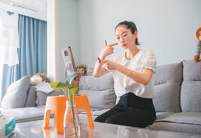90后聽障女孩譚婷通過直播平臺為聽障人士解答法律問題。新華社記者 唐 奕攝