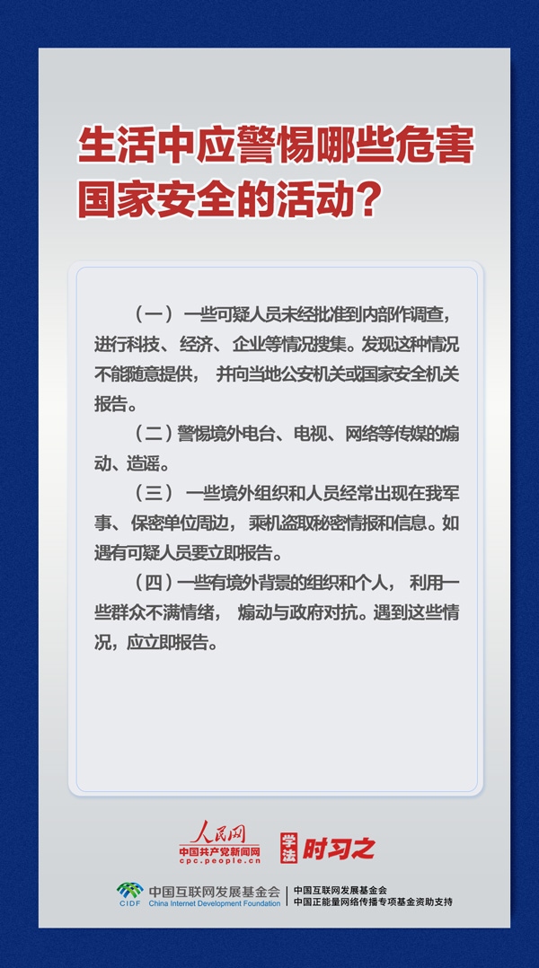 國家安全,共同守護(hù)。如有發(fā)現(xiàn)危害國家安全的行為和線索,請及時(shí)撥打國家安全機(jī)關(guān)舉報(bào)受理電話12339或登錄www.12339.gov.cn網(wǎng)站進(jìn)行舉報(bào)。