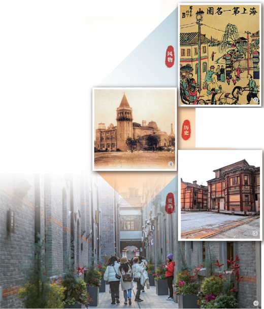 圖③:清末小校場筠香齋刻印的年畫《海上第一名園》。 上海靜安置業(yè)集團供圖 圖④:歷史影像中的張園“安塏第”。 上海靜安置業(yè)集團供圖 圖⑤:張園東區(qū)保護建筑平移工程現(xiàn)場。 上海靜安置業(yè)集團供圖 圖⑥:游人徜徉于張園的里弄巷道,近距離感受歷史建筑之美。 王初攝(人民視覺)