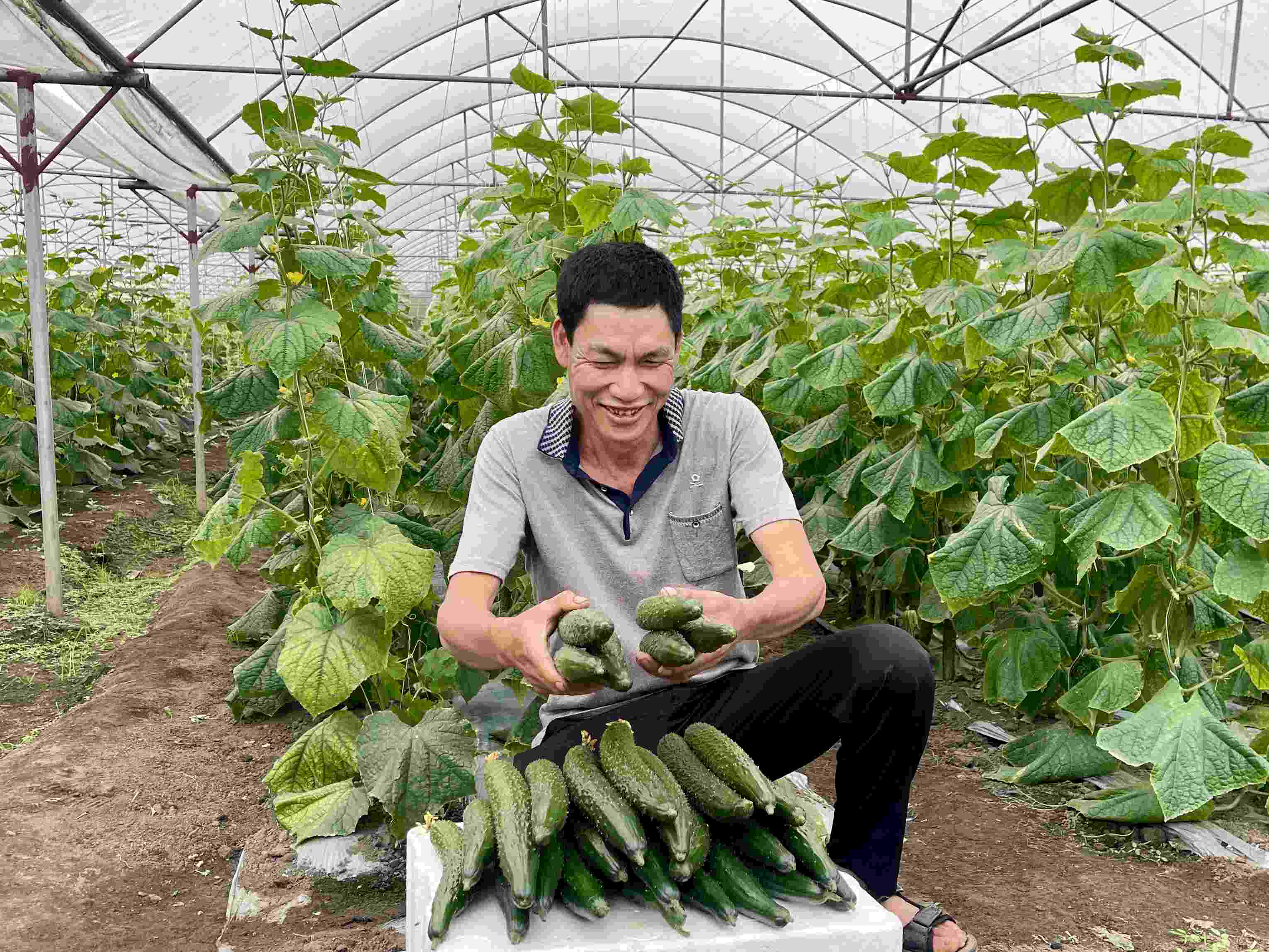 在北海市銀海區(qū)福成鎮(zhèn)三合口村的一個大棚種植基地里,邱福寧家種植的黃瓜已經(jīng)成熟,剛采摘完一籃子黃瓜的他,臉上洋溢著豐收的喜悅。