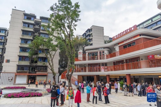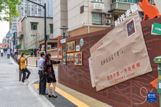 4月28日,重慶市九龍坡區(qū)謝家灣街道民主村片區(qū)城市更新項目(一期)正式竣工亮相,市民游客前來打卡。