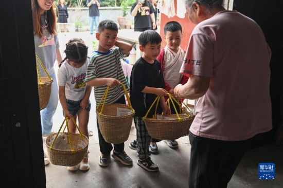 5月4日,小朋友手提竹籃,體驗(yàn)挨家挨戶“派野米”的習(xí)俗,再用收集到的食材蒸“野米飯”。