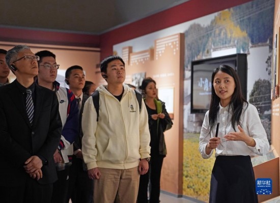 4月28日,在上海市檔案館的展廳內(nèi),編研部工作人員戴舒(右一)為參觀者講解。檔案館的青年組成“上海市檔案館青年檔案文化志愿宣講團隊”,常年擔任館內(nèi)展覽的志愿講解員。