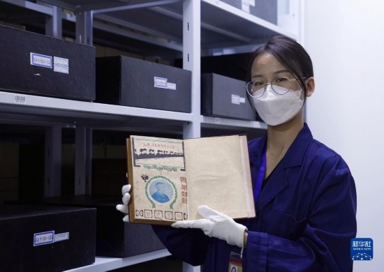 4月28日,在上海市檔案館的珍檔庫房,保管部工作人員趙競舸展示館藏珍檔《青年雜志》創(chuàng)刊號。