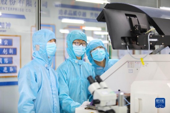 5月4日,青年技術(shù)員在重慶平偉實(shí)業(yè)股份有限公司無塵生產(chǎn)車間調(diào)試芯片生產(chǎn)設(shè)備。