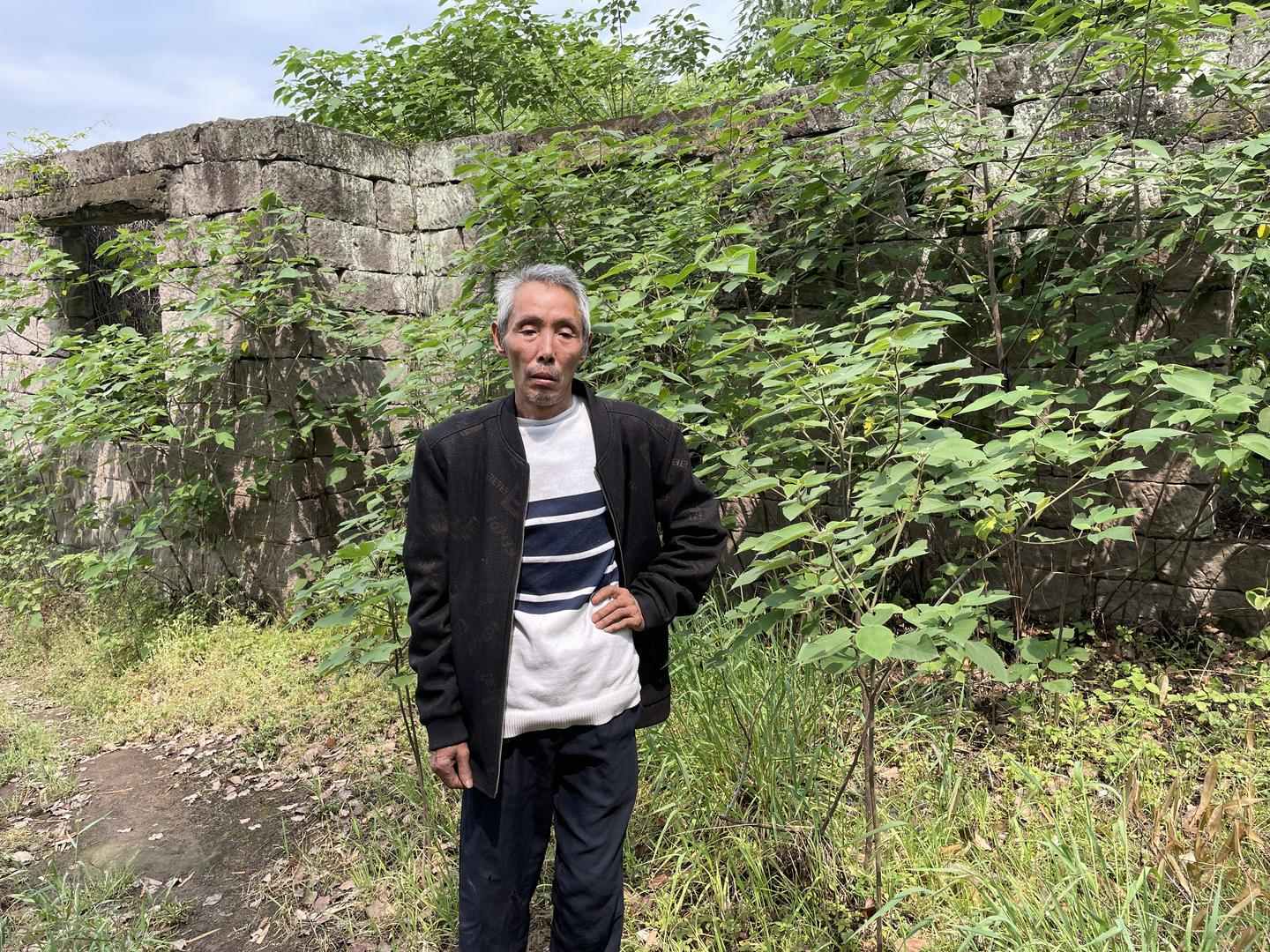 從“大巖洞”爬上一個(gè)陡坡,再走百多米小路,就是馮必全曾經(jīng)的家。由于房子長(zhǎng)期無(wú)人居住,房頂全沒(méi)了,僅剩兩米左右高、光禿禿的石頭墻。屋里長(zhǎng)起來(lái)的雜木,大的已經(jīng)有小碗那么粗了。