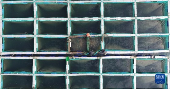 5月19日,廣鹿島鎮(zhèn)的漁民在轉(zhuǎn)運(yùn)海參苗(無人機(jī)照片)。